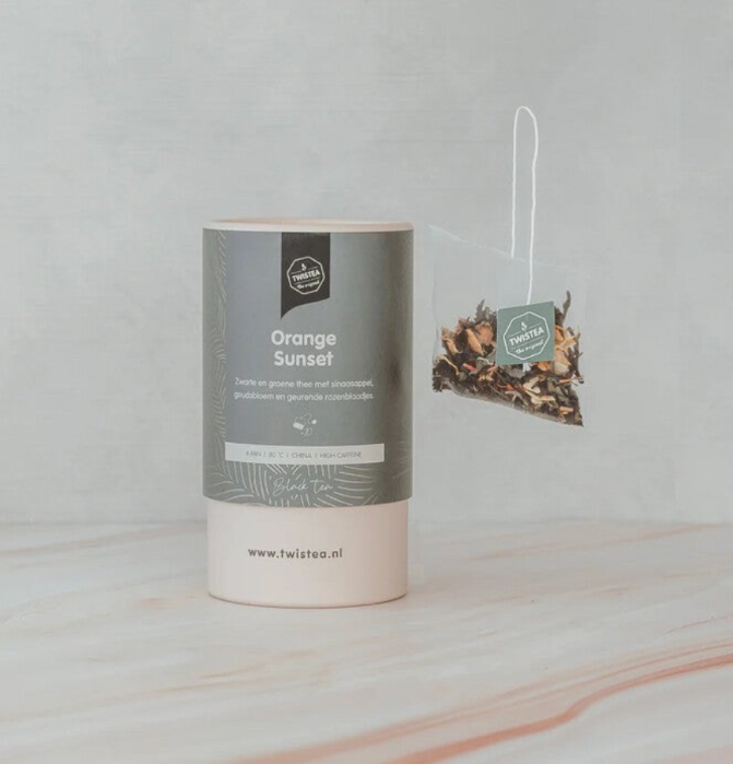 Deze fruitige creatie verrast met haar pittige accenten. Exotisch fruit, geurige bloesems en romig zachte amandelen smelten samen tot een oosterse smaakbeleving. TwisTea Orange Sunset smaakt minstens zo fantastisch als jij eruit ziet!